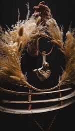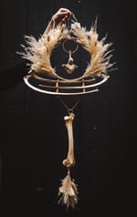 copper, copper/iron alloy chain, preserved assorted flora, and a scavenged elk vertebra.