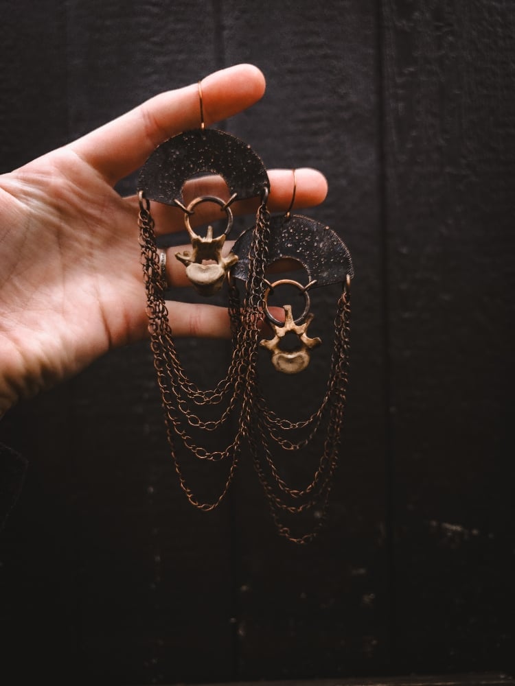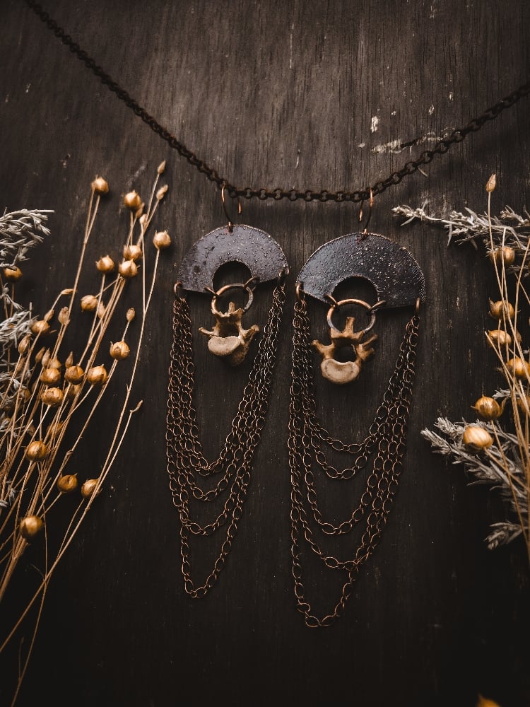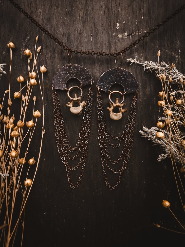 copper and scavenged raccoon bone earrings