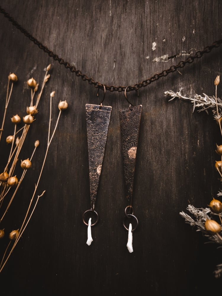 copper and scavenged coyote tooth earrings