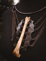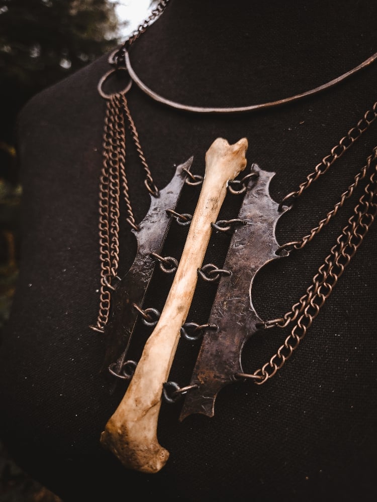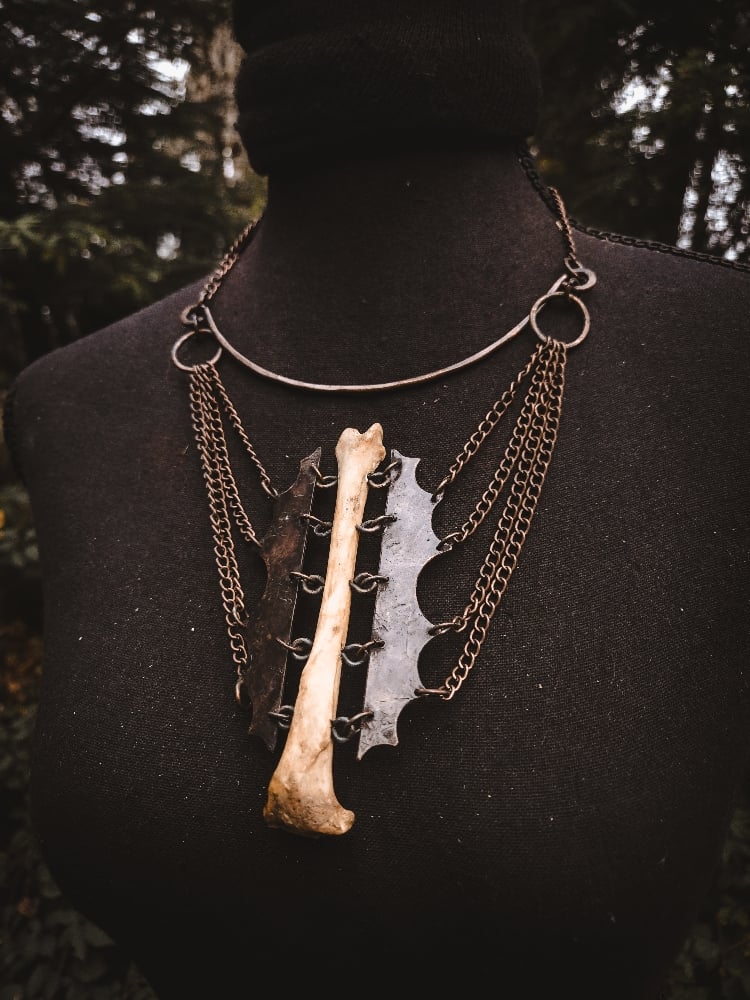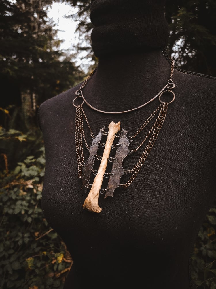 copper, copper/iron alloy chain, and scavenged coyote bone necklace.