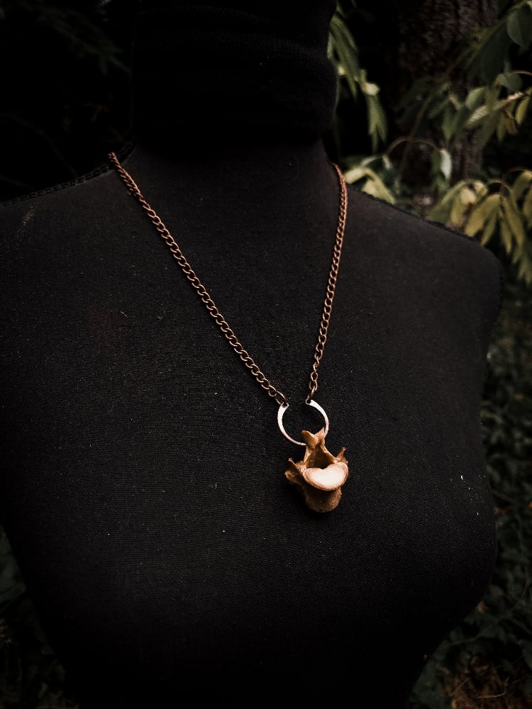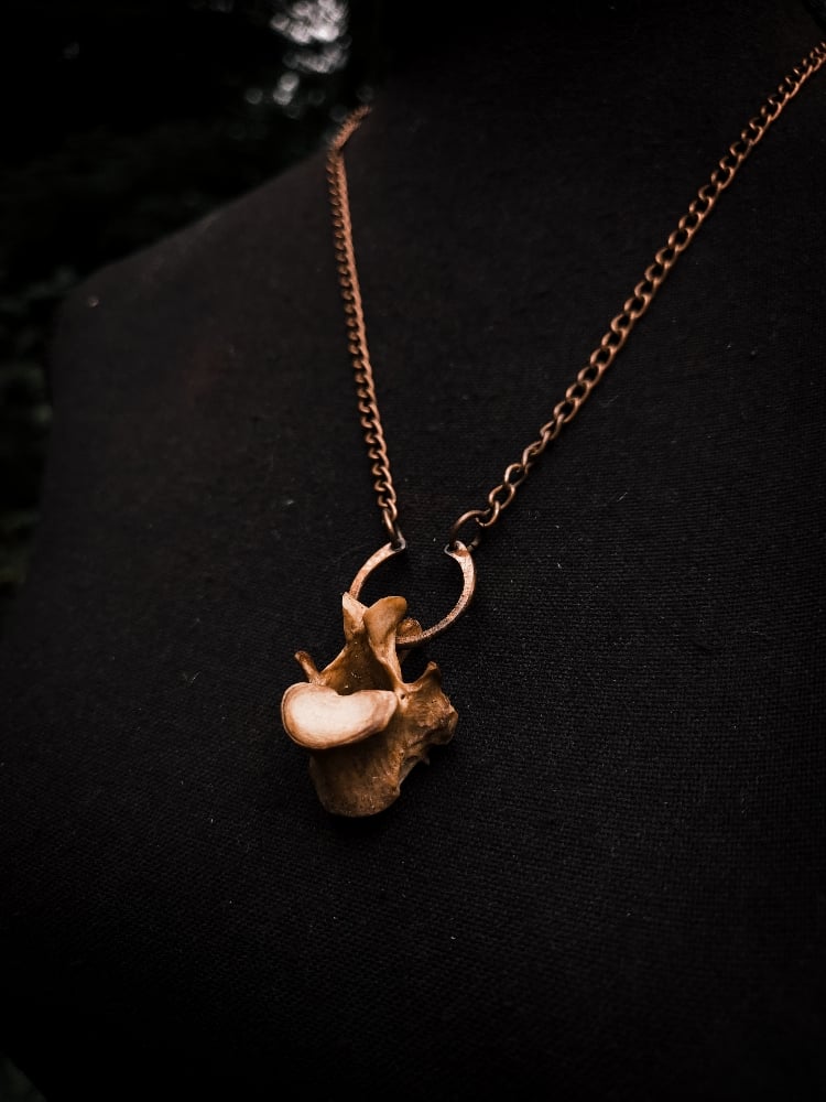 copper, copper/iron alloy chain and scavenged coyote bone