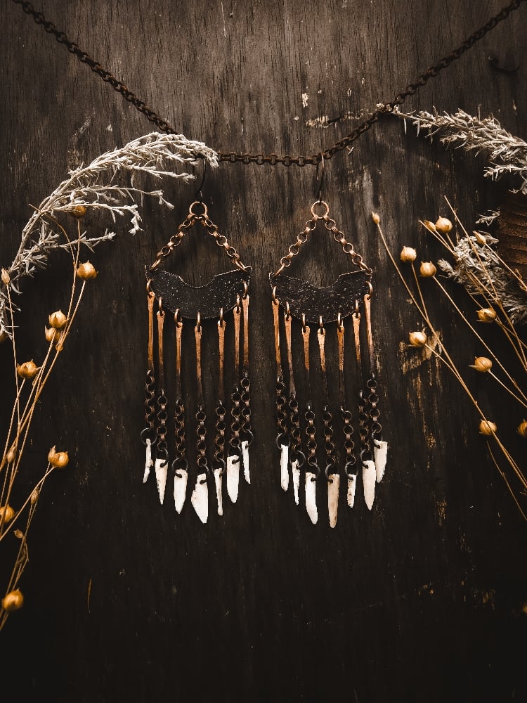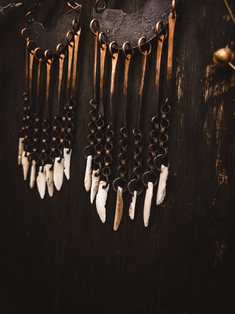 copper and scavenged deer bone earrings