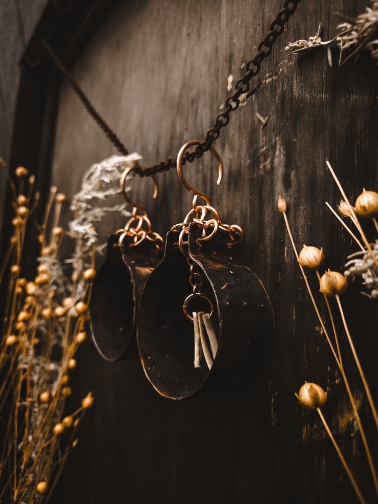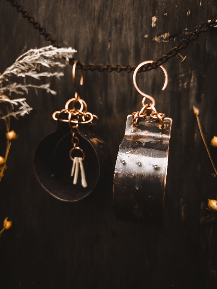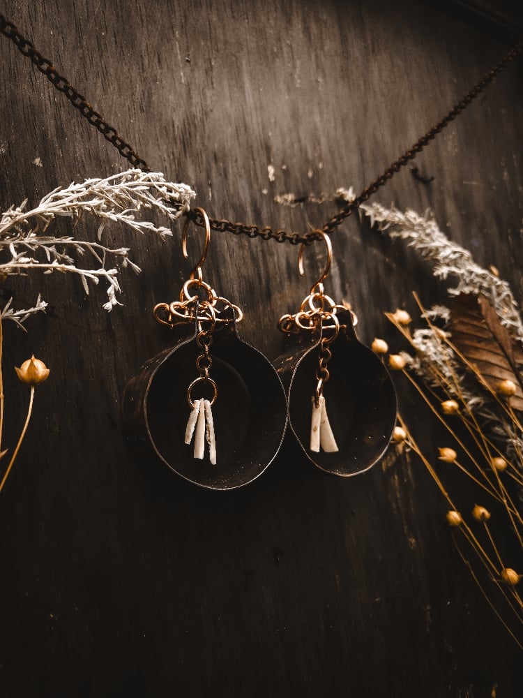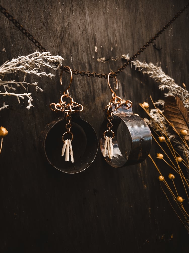 copper and scavenged deer bone earrings