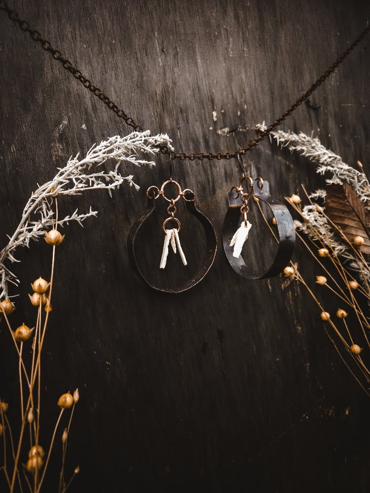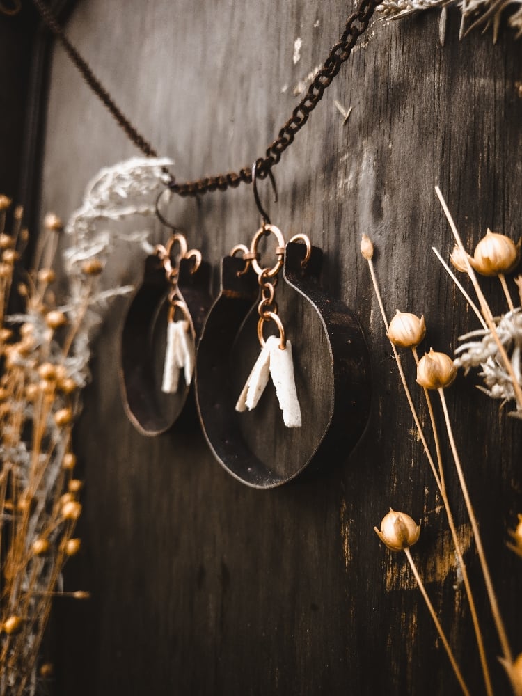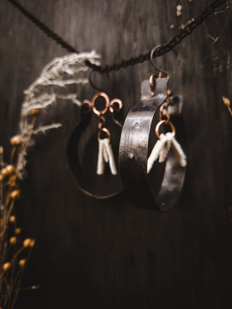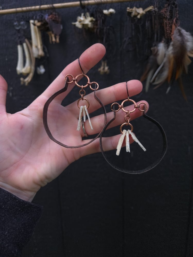 copper and scavenged deer bone fragment earrings