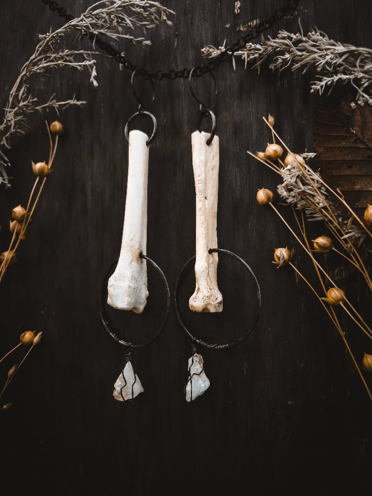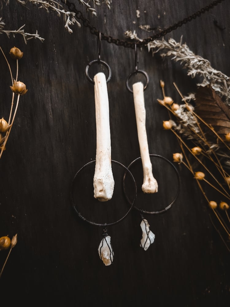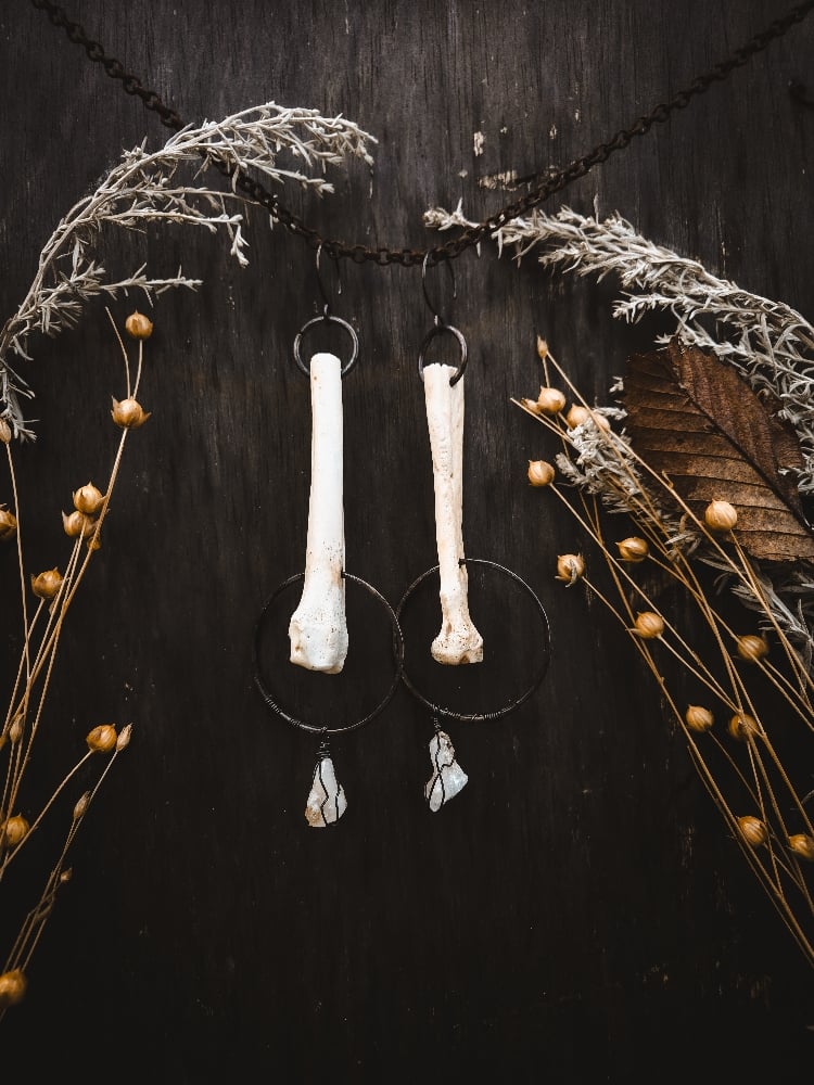 copper, citrine and scavenged coyote bone earrings