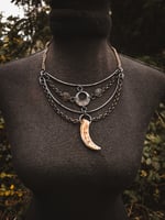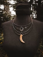copper, copper/iron alloy chain, and scavenged coyote bone necklace.