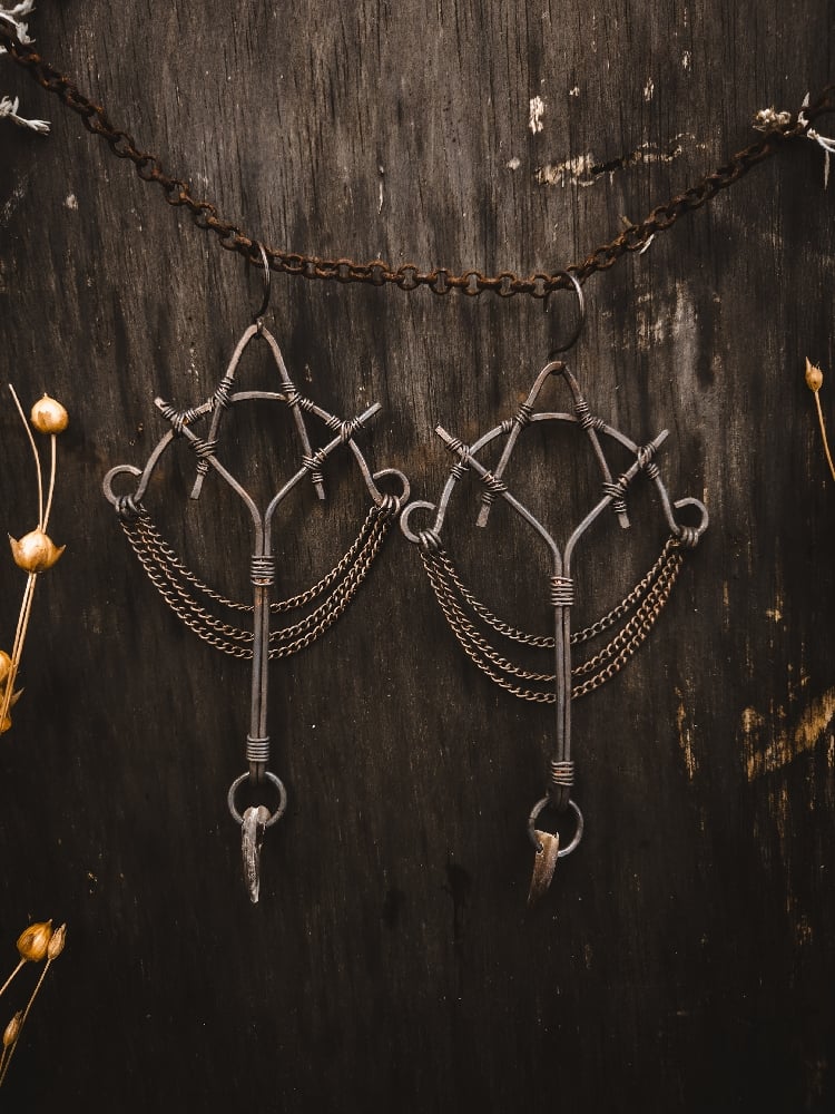 copper and scavenged beaver bone earrings