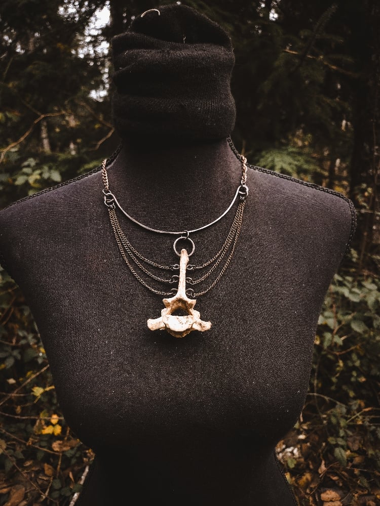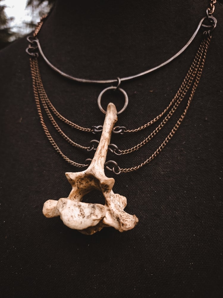 copper, copper/iron alloy chain, and scavenged deer bone necklace.
