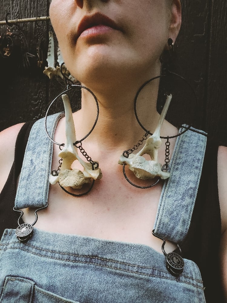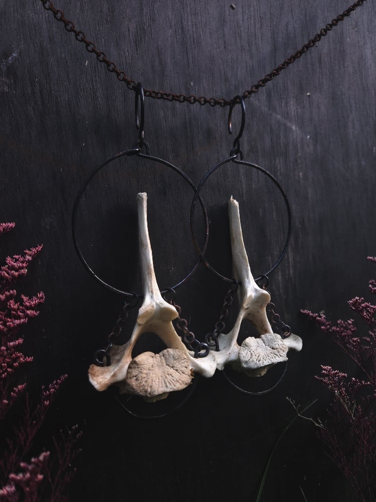 copper, copper/iron alloy chain and scavenged deer vertebrae